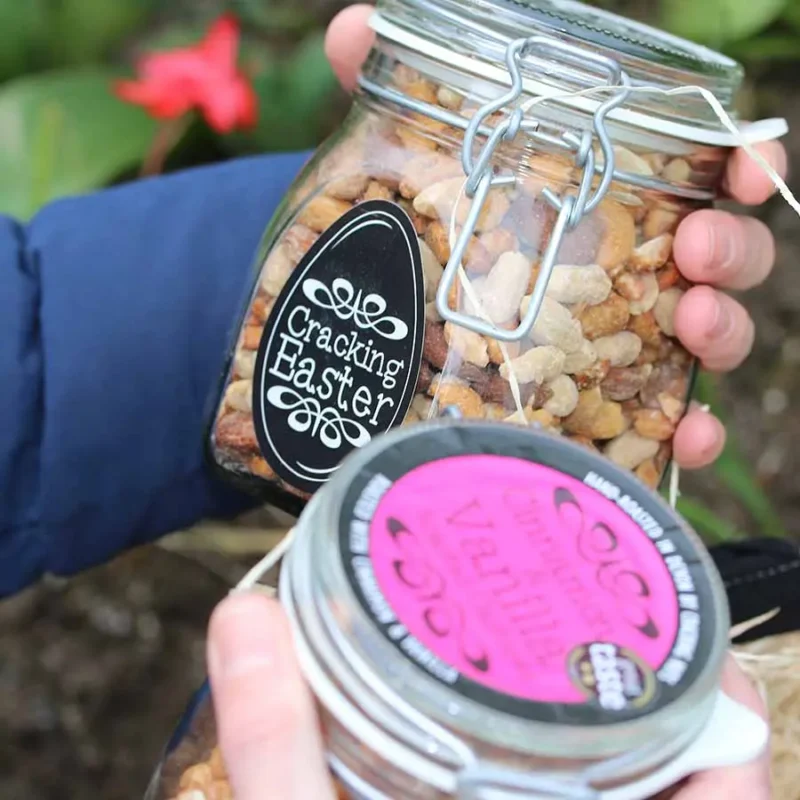 Looking for an alternative to Chocolate for Easter this year? How about 2 jars of freshly roasted nuts from Devon-based Cracking Nuts. Choose 2 Jars (450g – 500g/jar) from Cracking Nuts most popular flavours. Comes with a Cracking Nuts reusable Jute Bag.